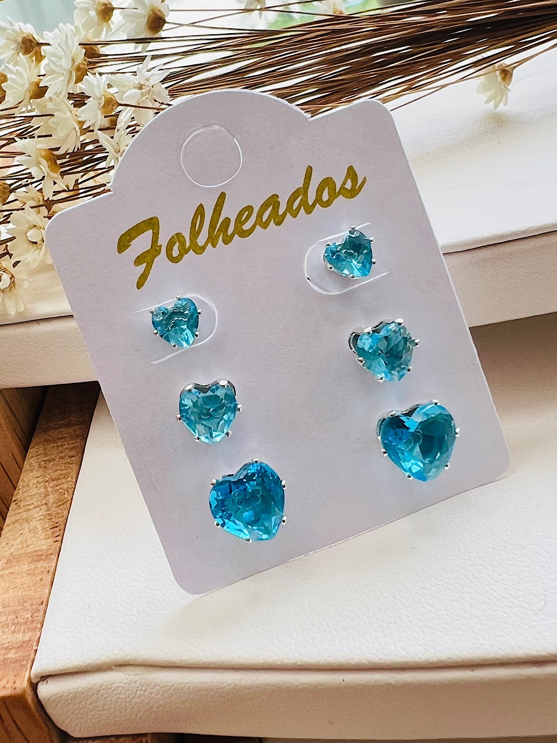 - Carlela Folheada PRATA Coração Coração Zircônia Azul 1