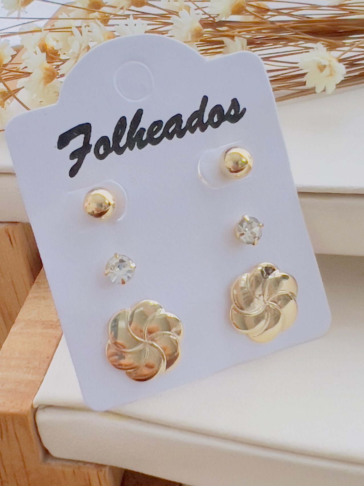 Trio de Argolinhas Strass Folheado a Ouro Boreal 62