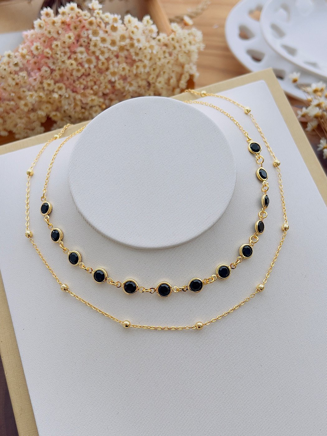 - Choker Dupla Folhado a Ouro Bolinhas 6408