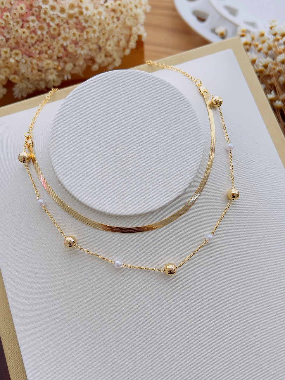 R$ 0,71Colar Duplo Folheado a Ouro Perola 5015