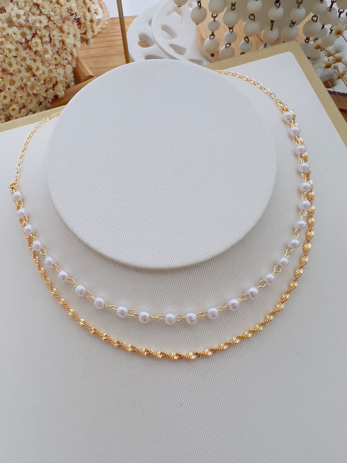 4. Choker Dupla Folheado a Ouro Perola 8636