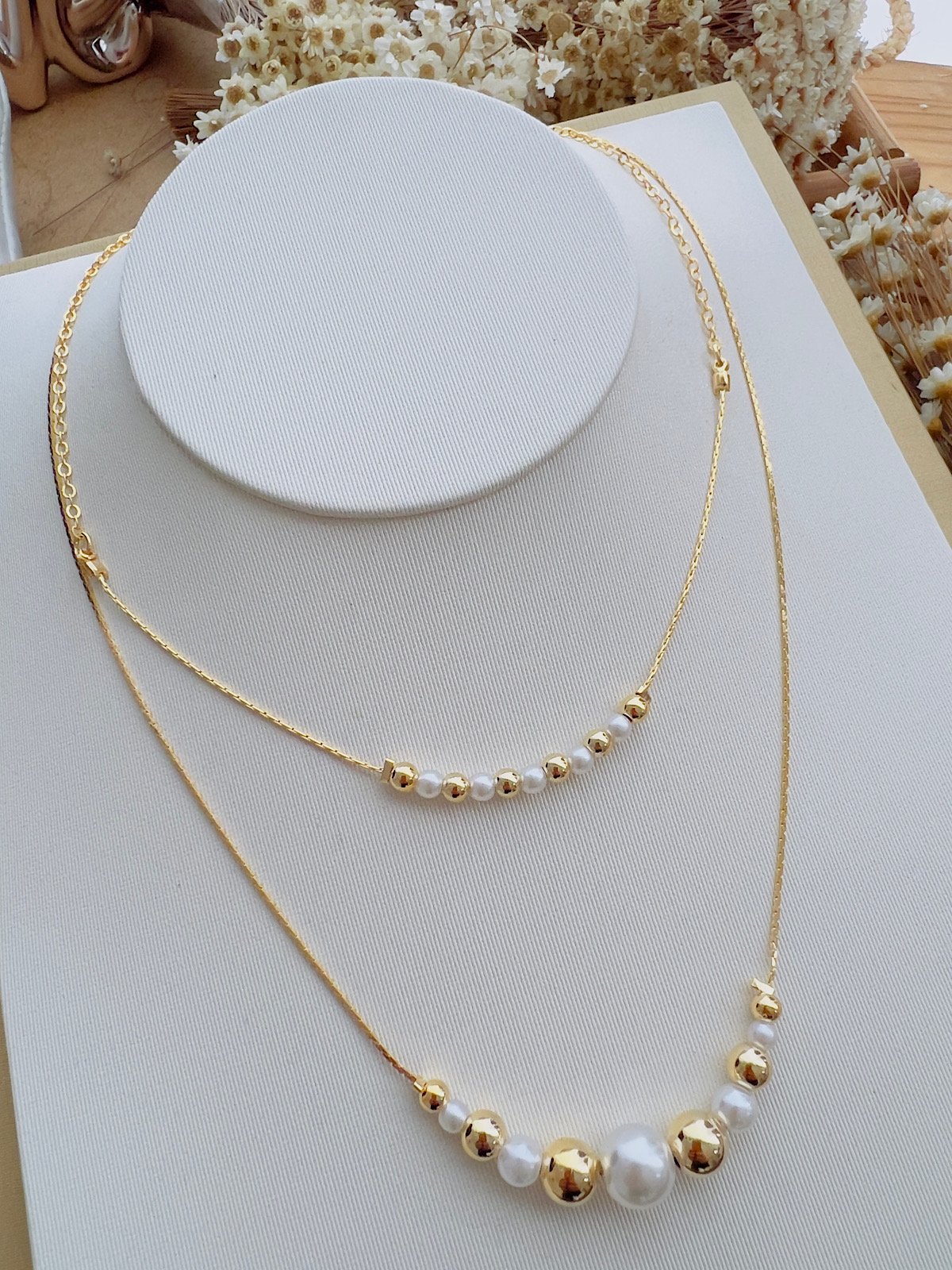 Colar Duplo Folheado a Ouro Esfera Perola 7452
