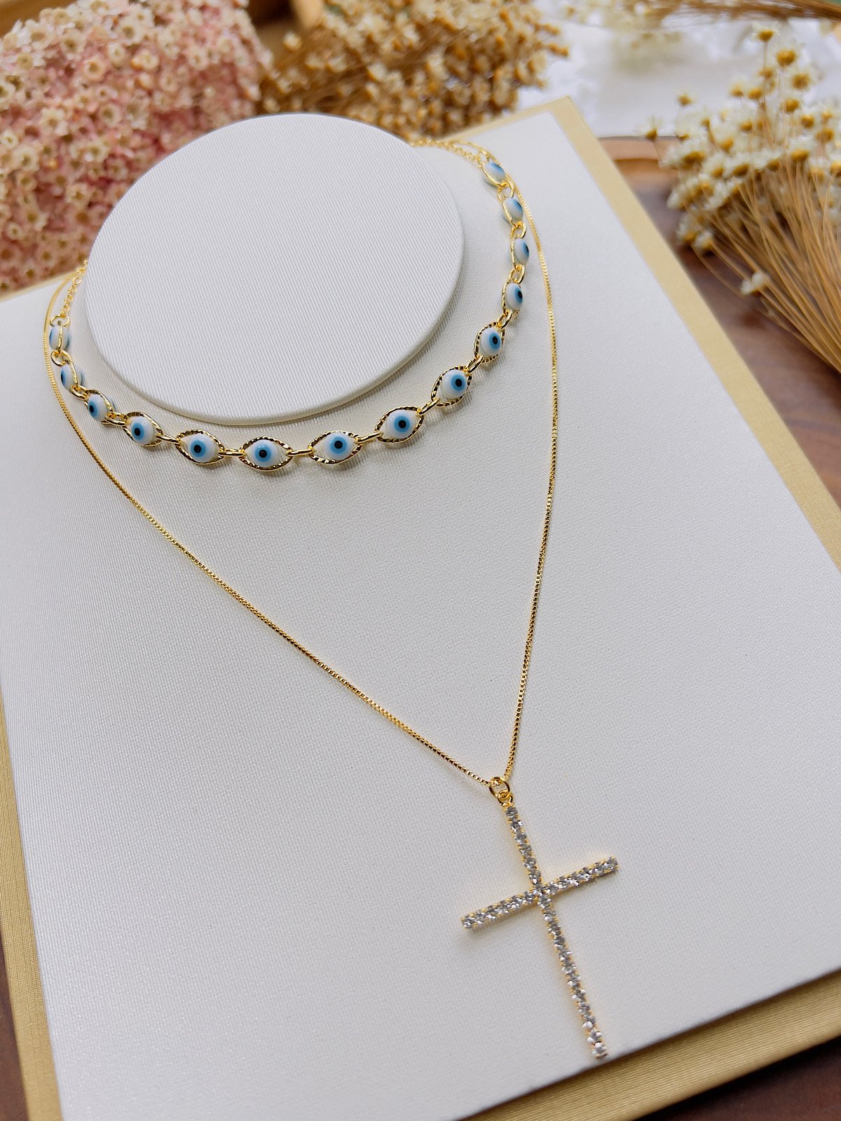4. Colar Duplo Folheado a Ouro Olho Grego 3928
