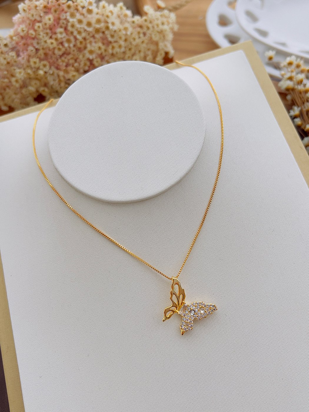 - Colar Folhado a Ouro Borboleta Micro Zirconia 6404