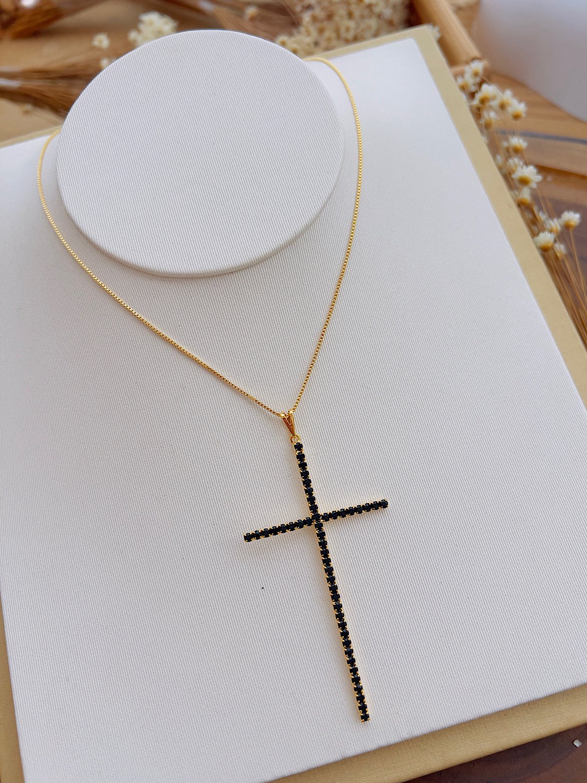 Colar Folheado a Ouro Crucifixo Preto 3675