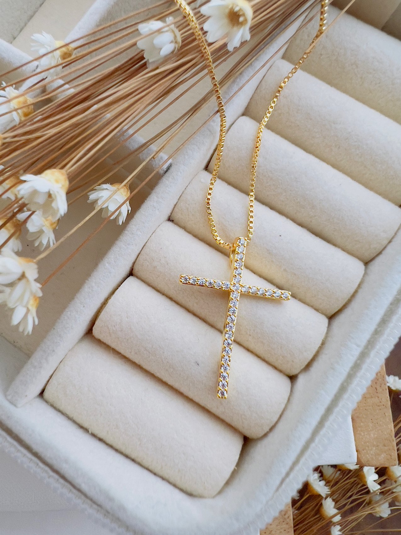 Colar Folheado a Ouro Micro Zircônia Crucifixo 8503