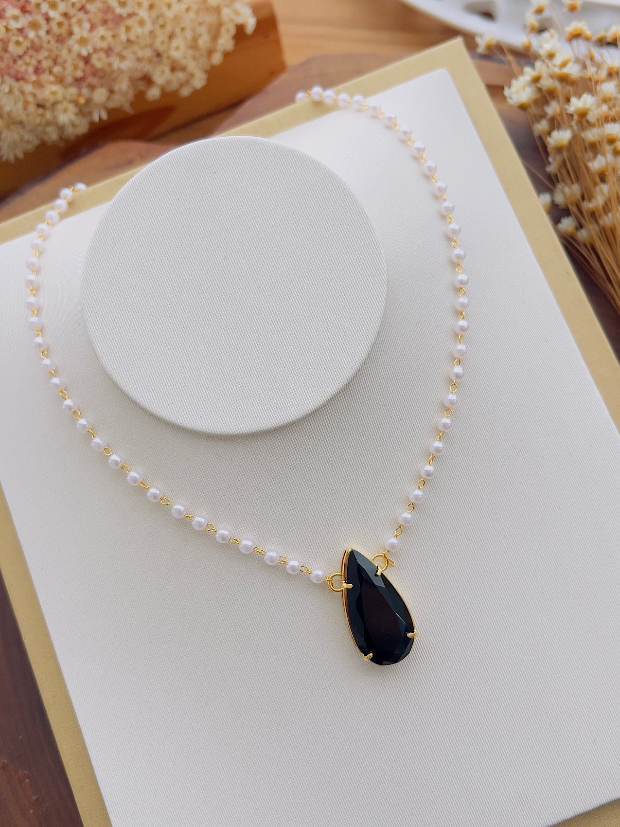 Colar Folheado a Ouro Pérola Gota Preto 3710