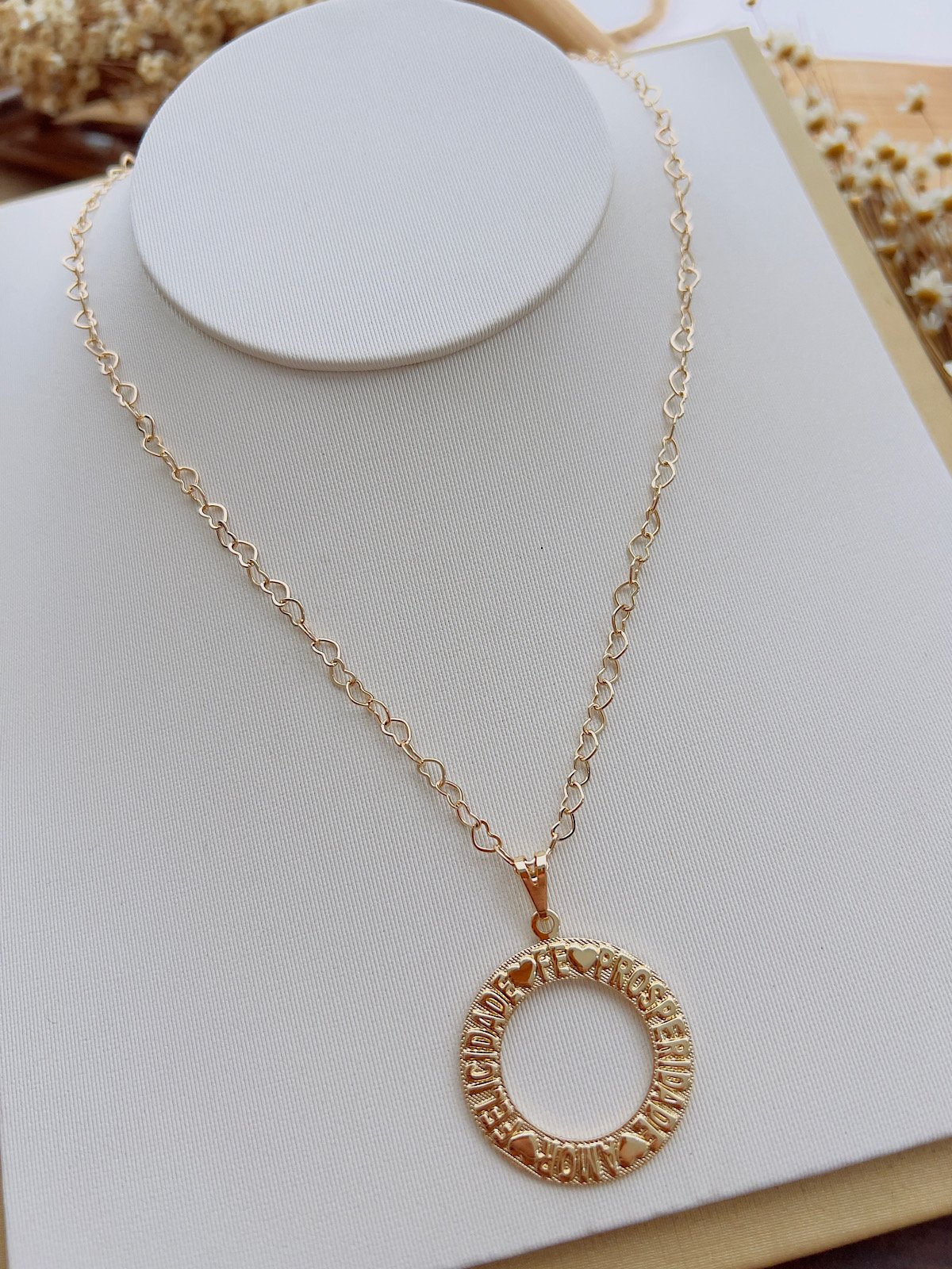 Colar Semijoia Felicidade, Fé, Prosperidade, Fé 794