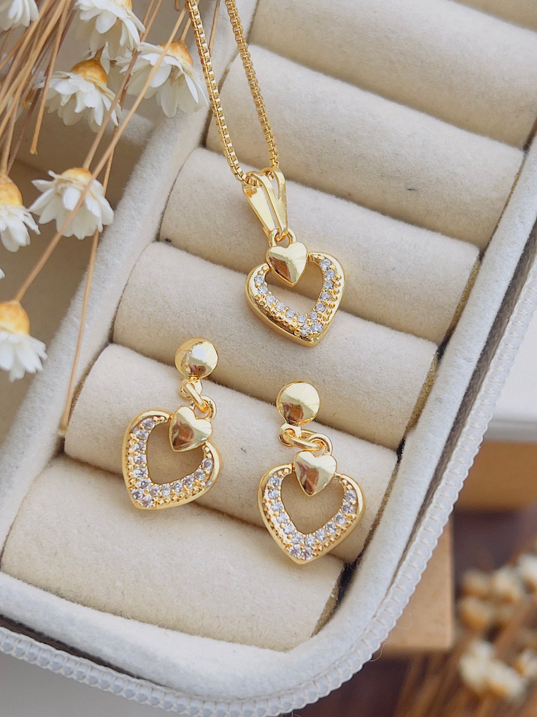 Conjunto Folheado a Ouro Coração Micro Zirconia 5094