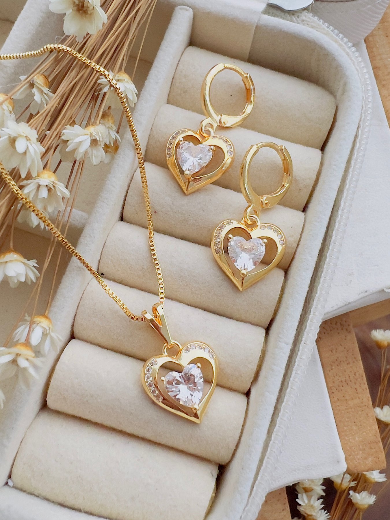 Conjunto Folheado a Ouro Micro Zircônia Coração 6971