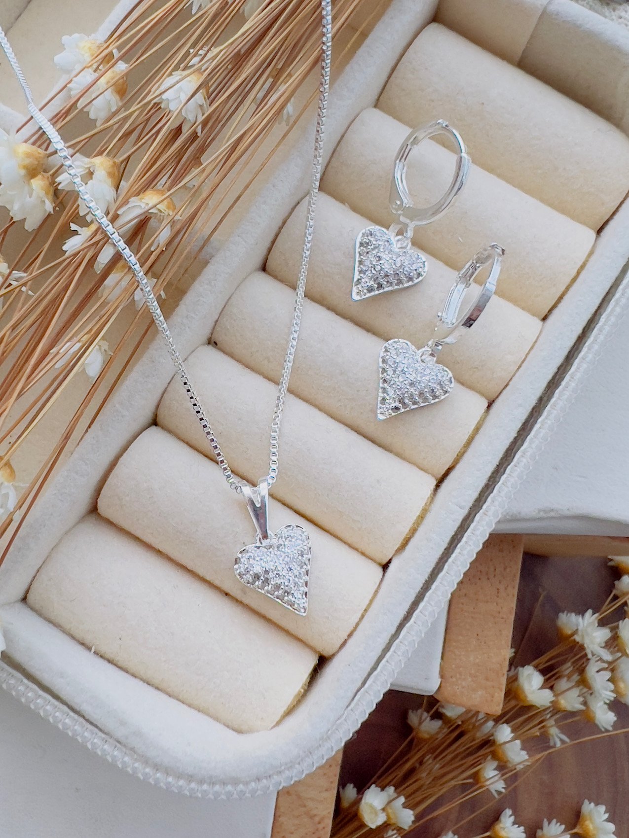 Conjunto Folheado a Prata Micro Zircônia Coração 2908
