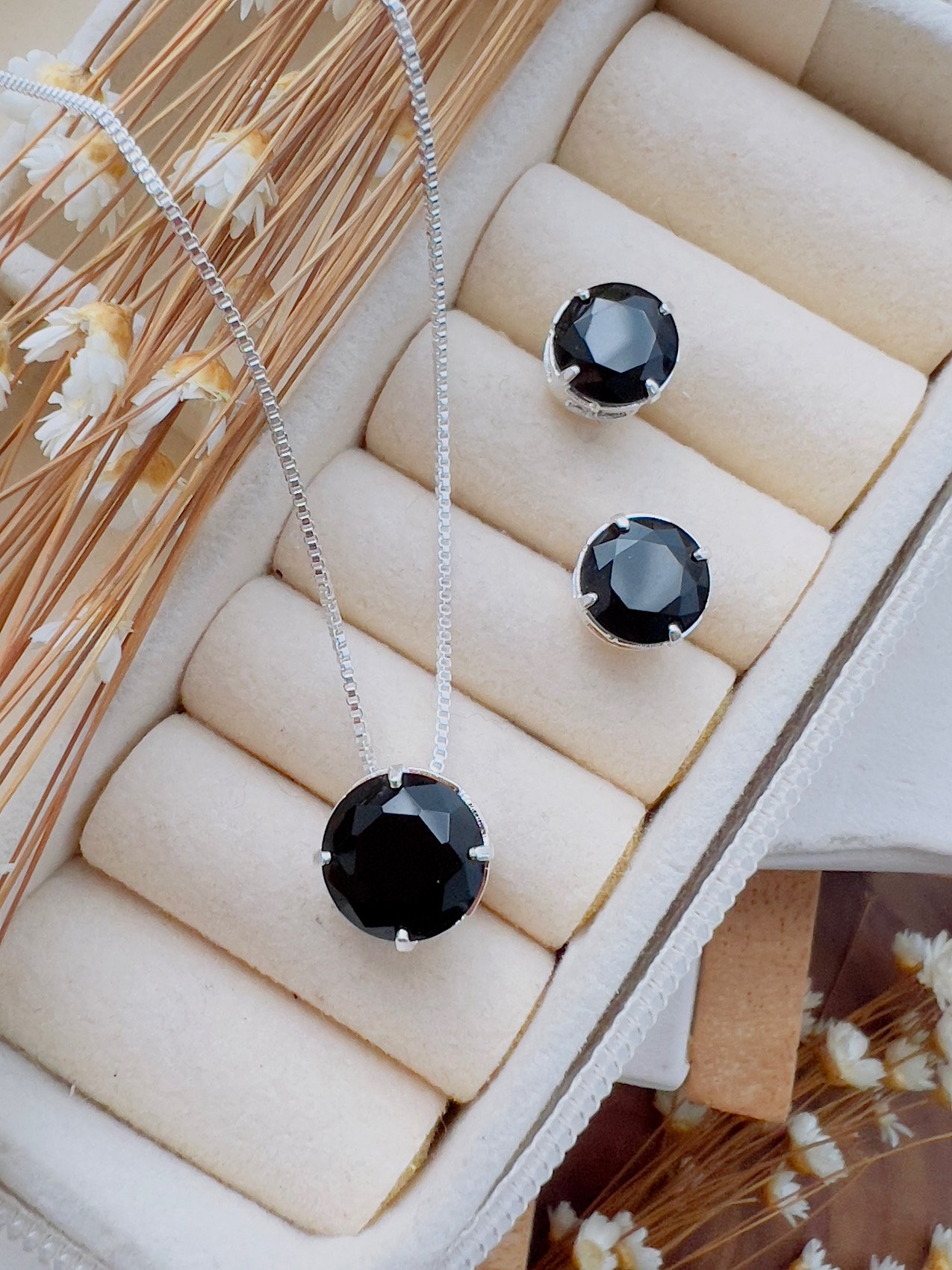 4. Conjunto Folheado a Prata Redondo Preto 4924