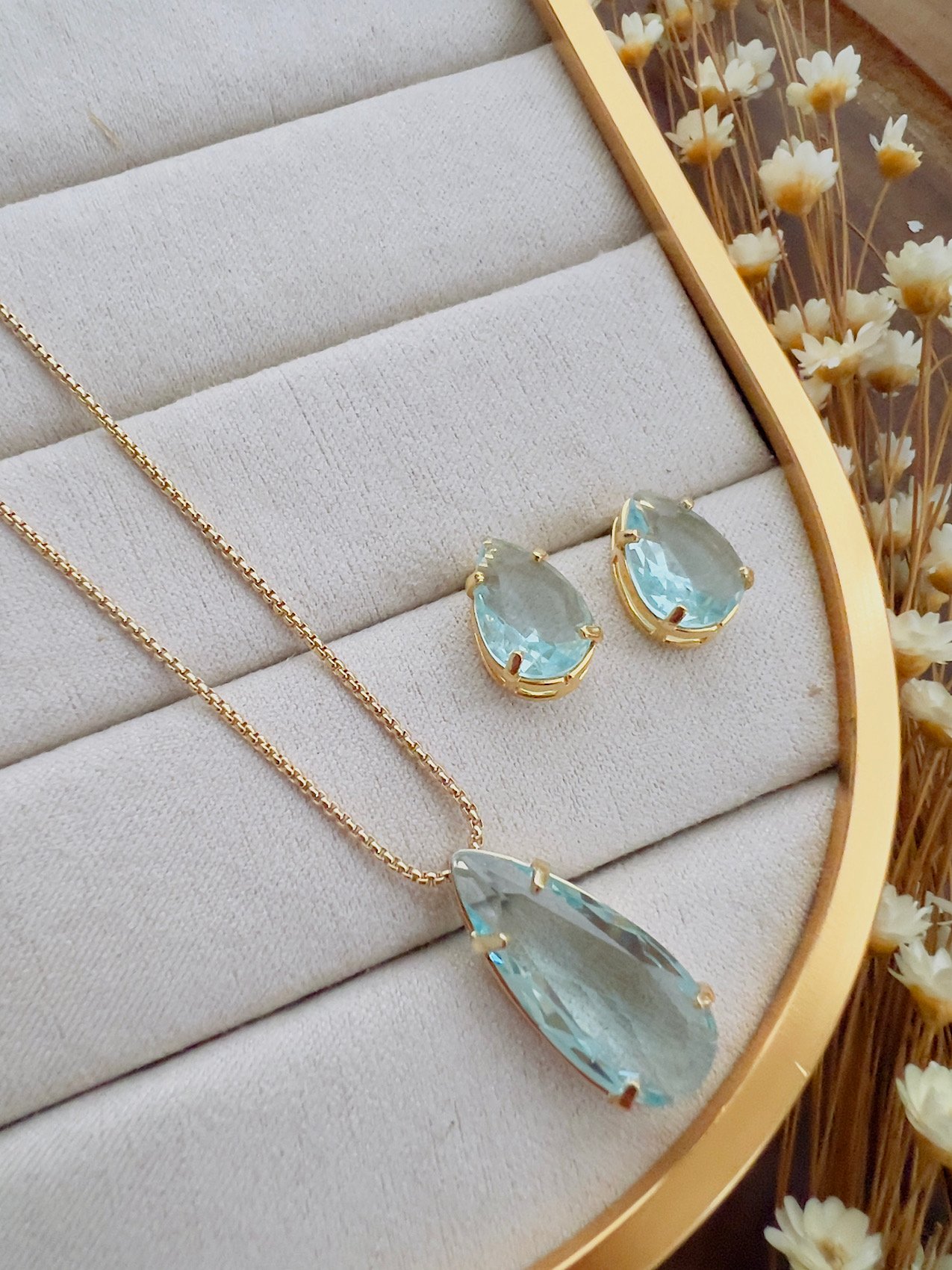 Conjunto Semijoia Gota Zircônia Água Marinha 861