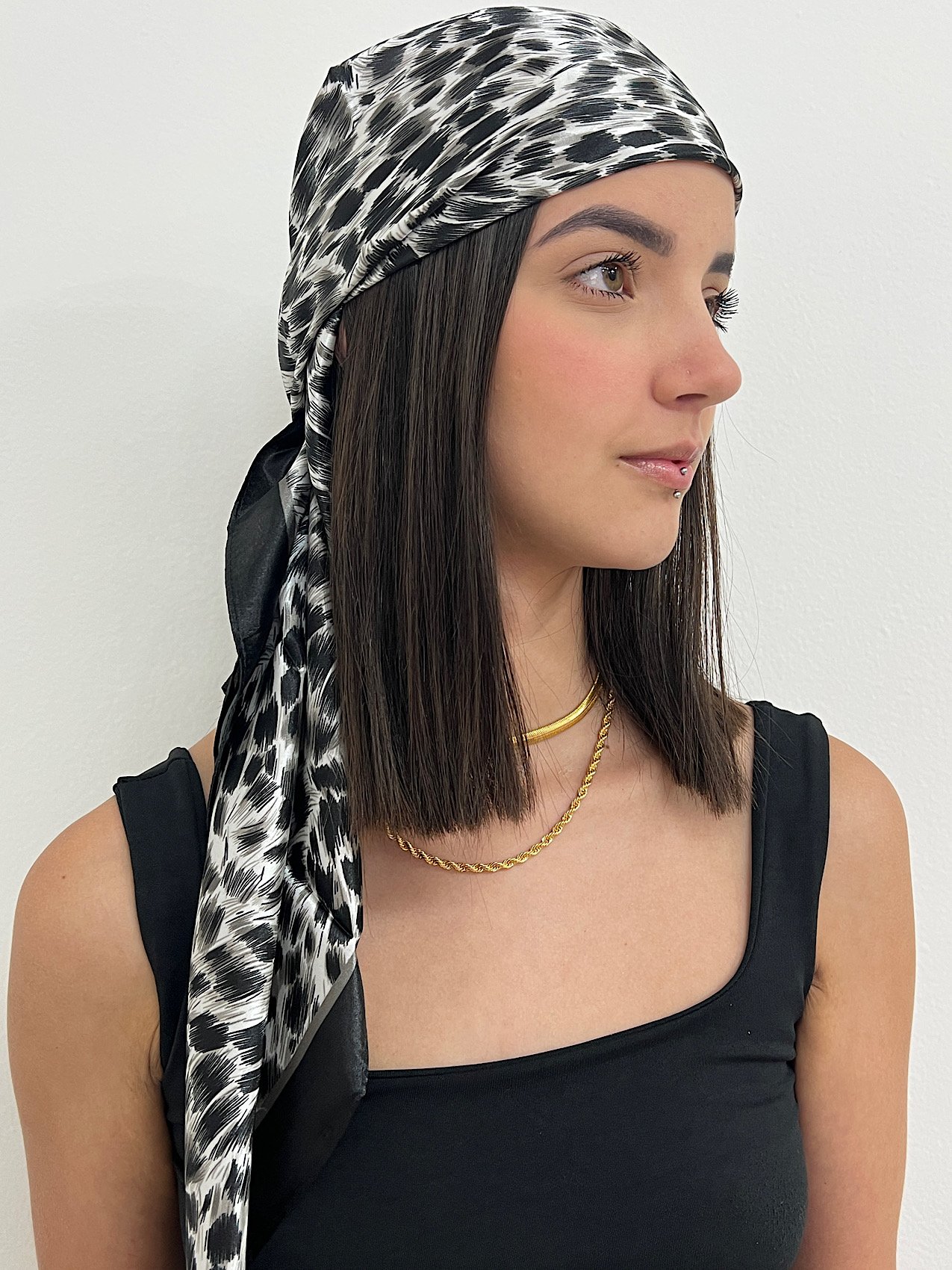 2. Lenço Cetim Estampado Onça Cor 1 9059