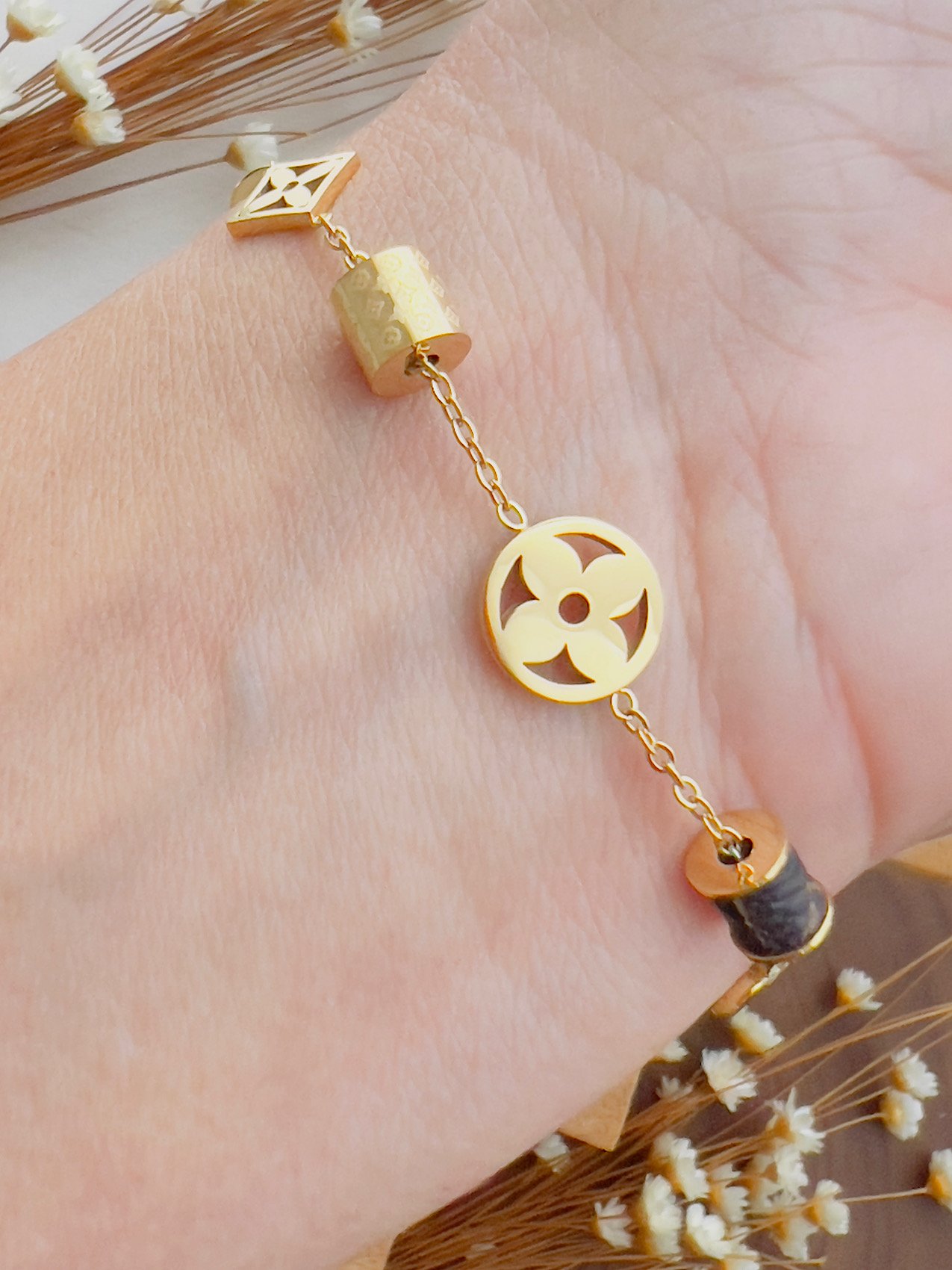 Pulseira Aço Inoxidável Dourado Inspiração 8907