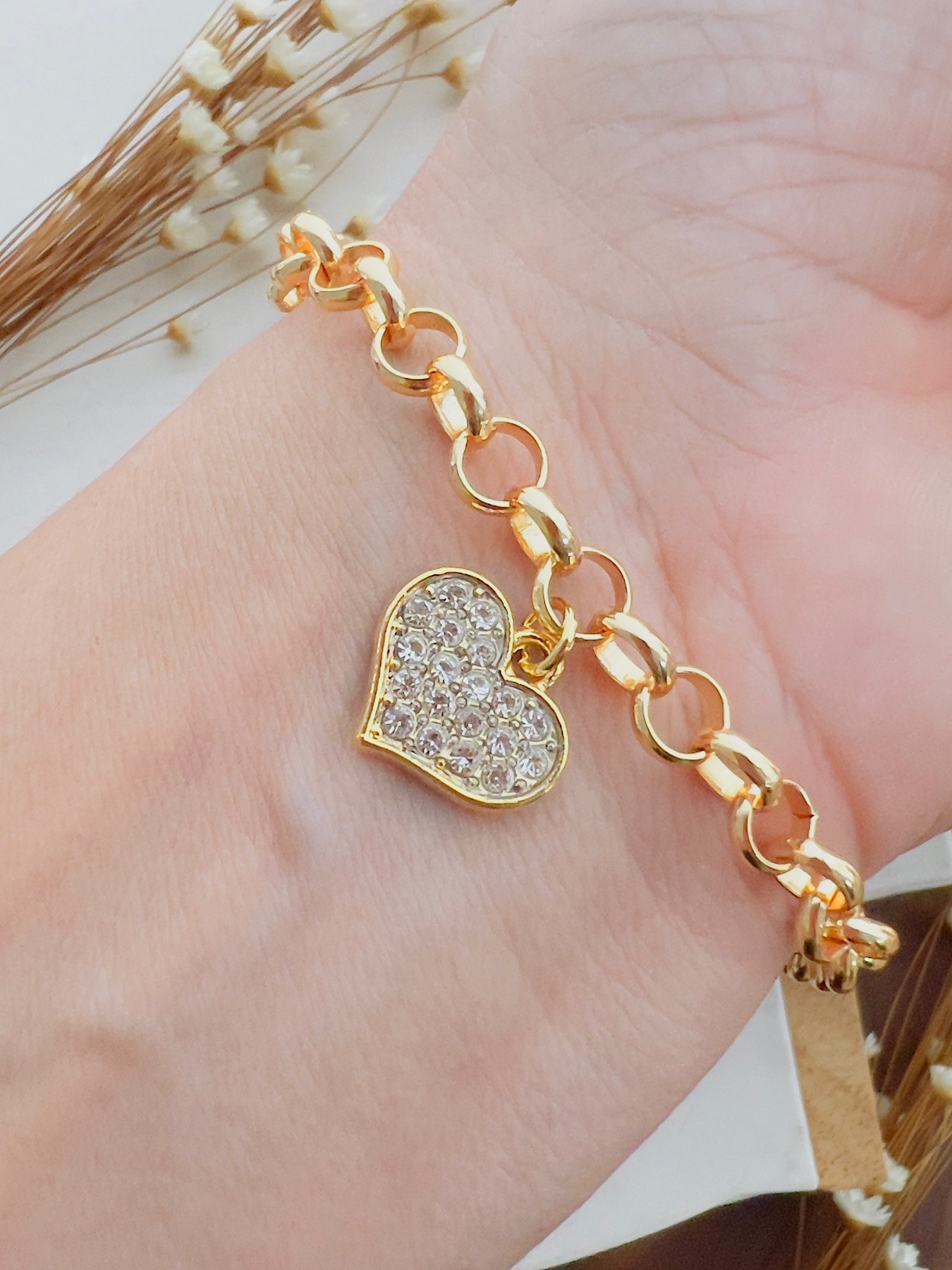 Pulseira Folheada a Ouro Elo Português Coração 7788
