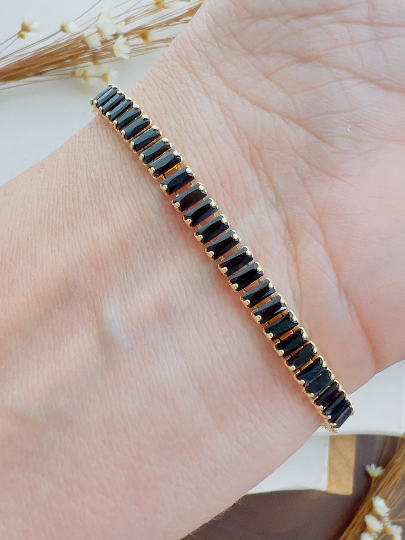 Pulseira Folheada a Ouro Navete Zircônia Preto 3246