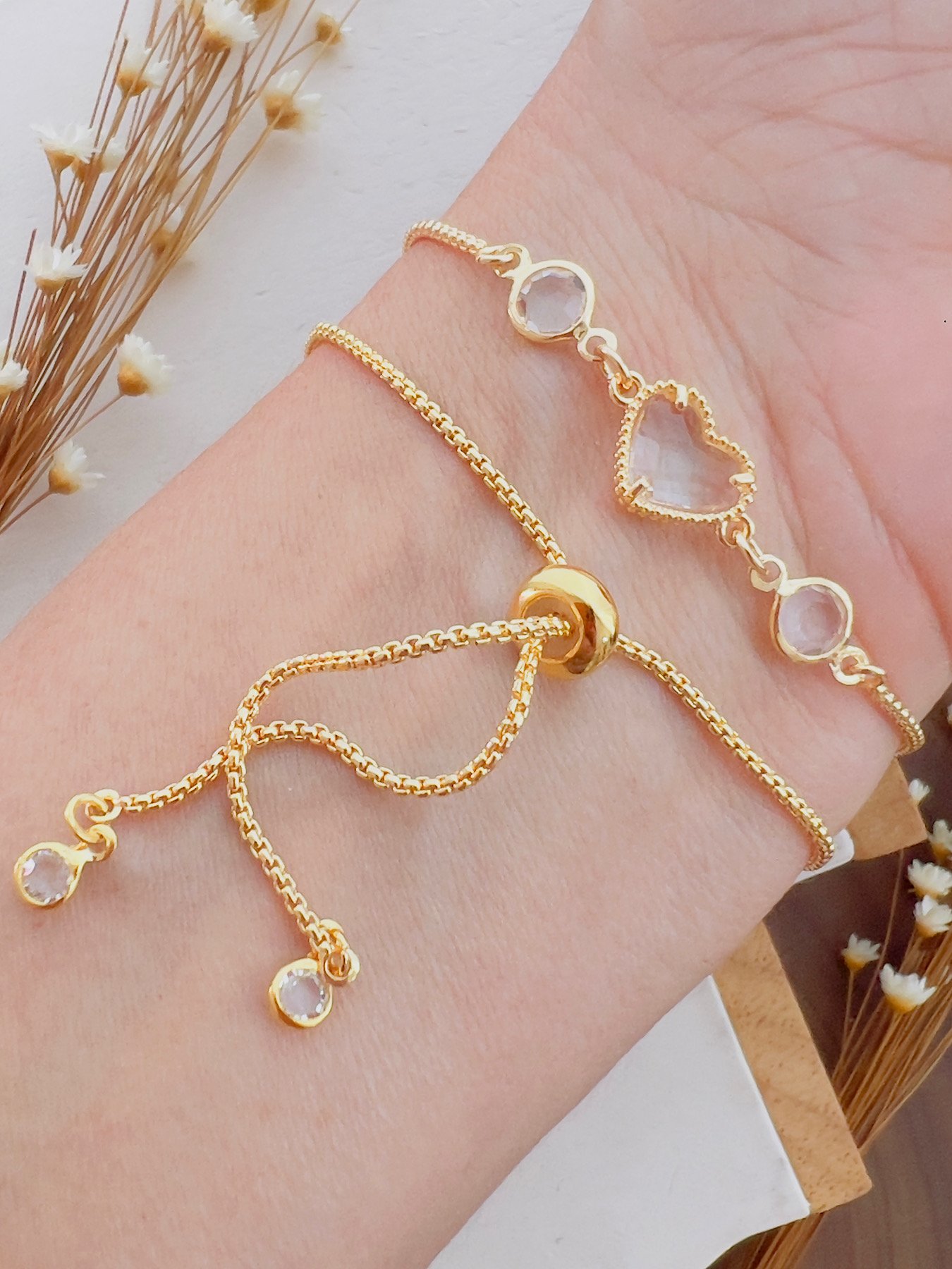 Pulseira Folheada a Ouro Regulável Coração Cristal 8034