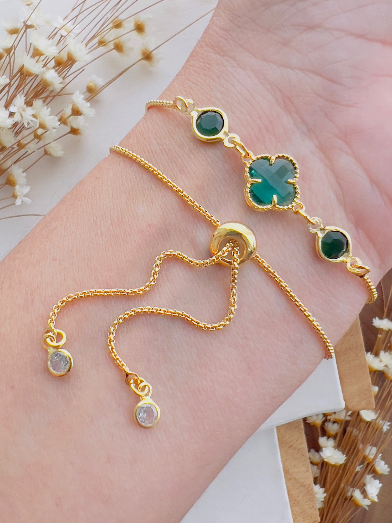 4. Pulseira Folheada a Ouro Regulável Virgínia Esmeralda 7635