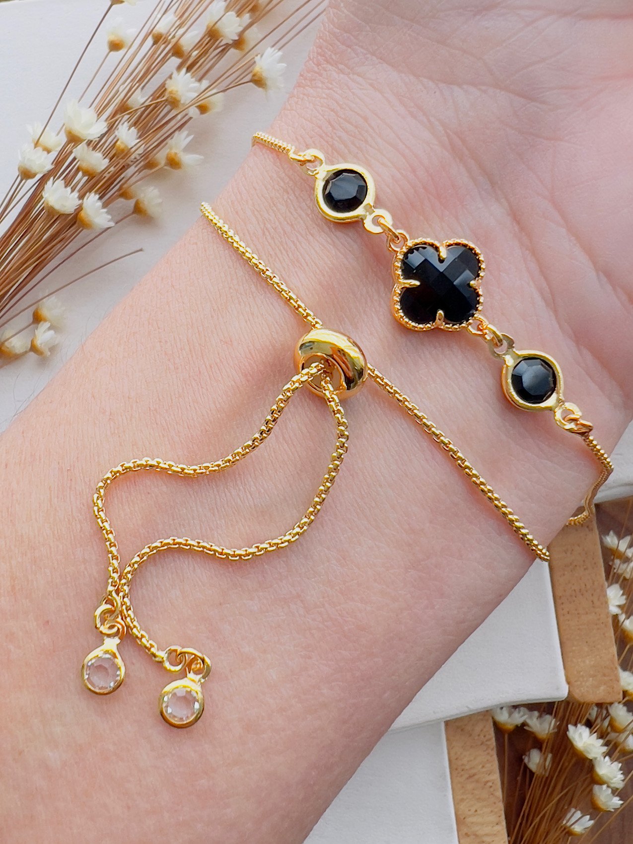 Pulseira Folheada a Ouro Regulável Virginia Preto 2237