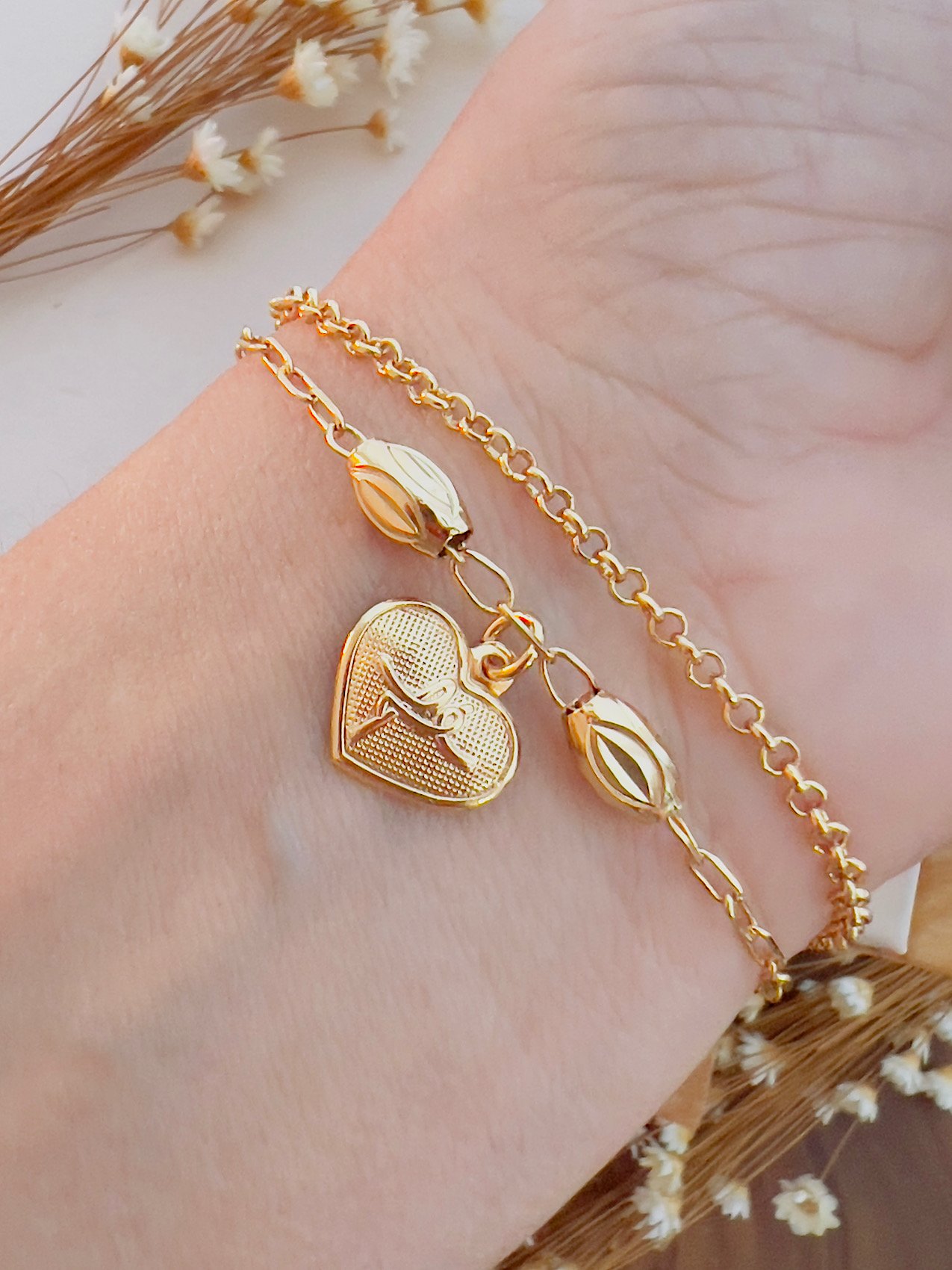 Pulseira Semijoia Coração Fé DOURADO 39