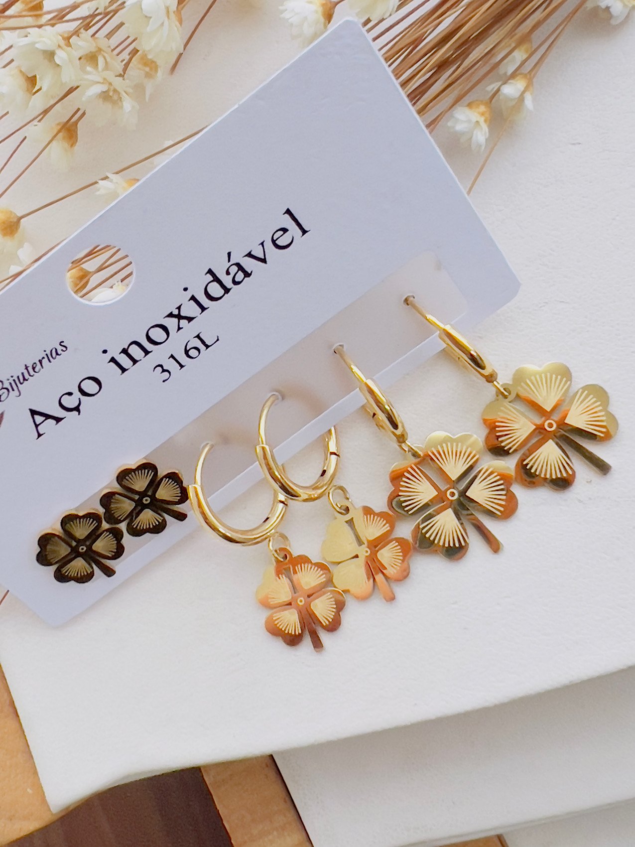 - Trio Aço Inoxidável Dourado Trevo 8931